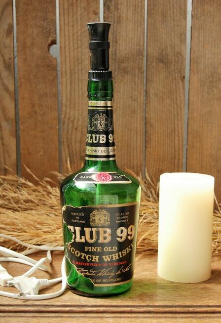 Stara lampa ręcznie wykonana ze starej butelki po szkockiej Whisky Club 99. Butelka ma ładny kształt, zielony kolor i ...