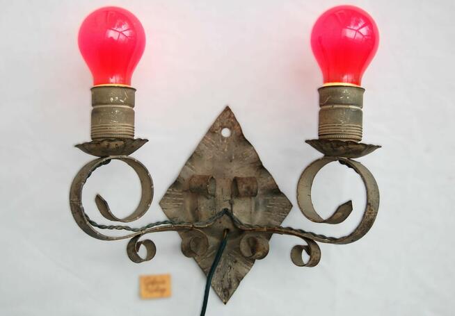 Stary, dwuramienny, kuty kinkiet metalowy. Gdy sąsiedzi prześcigają się w efektach specjalnych LED, przyprawiających o ...
