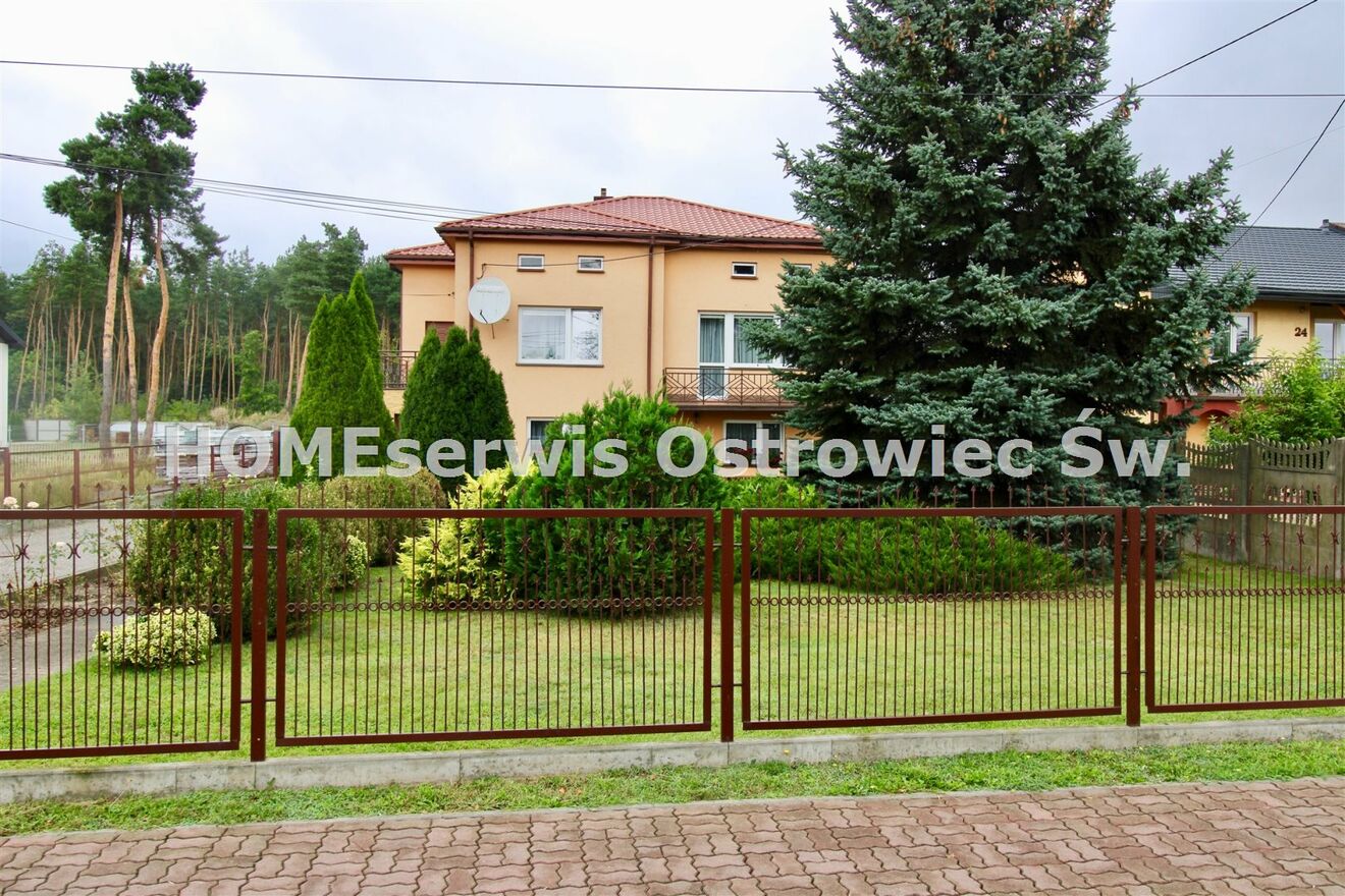 Dom 2-rodzinny, zarówno parter jak też piętro to 3 pokoje, kuchnia i łazienka. Duży balkon od strony południowo-zachodniej. Ogród przed domem osłonięty szpalerem drzew i krzewów.